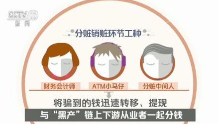 詐騙一旦實施成功,就進入了分贓銷贓的環節,財務會計師、ATM小馬仔、分贓中間人會將騙到的錢迅速轉移、提現,并與“黑”產鏈上下游的15個工種從業者一起分錢。