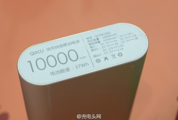 在今日舉行的2015中國(guó)移動(dòng)全球合作伙伴大會(huì)上,奇酷的展臺(tái)不僅展示了最新手機(jī)還帶來(lái)了旗下多款周邊配件產(chǎn)品,例如安全插線板、超級(jí)充電器、隨身WIFI、智能路由等。其中奇酷首款快充移動(dòng)電源也亮相其中,型號(hào)為QCPB100Q,電芯容量10000mAh,37Wh;額定有效容量6500mAh。