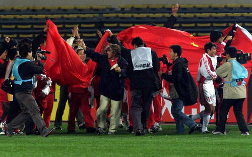 昨日,在陜西省體育場的世界杯預選賽上,中國男足以3:0戰勝了卡塔爾,時隔16年再度入圍世界杯。曾被視為連上帝都無能為力的世界性難題“中國隊出線”,終于得到了解決。終場哨響起的一刻,球場內外幾萬名球迷熱淚盈眶,電視屏幕前的無數國人也為此泣不成聲。當然世界杯的征程還遠未停止,入圍之后的國足將面臨更多強敵,希望他們能在世界杯決賽圈內走得更遠。