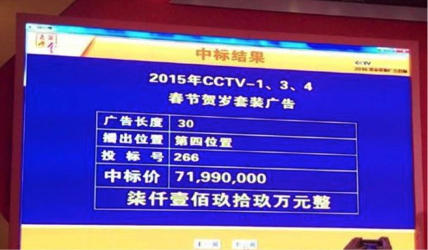 從1995年到2016年,在央視的廣告招標大戰中已經產生了22屆”標王”,而從2014年開始出現互聯網公司扎堆包場的情況,其背后所折射的行業變遷、傳遞的經濟信號以及自身發展的戲劇性演變,使得”春晚廣告”在諸多的關注與爭議聲中,被賦予了超過其經濟行為本身的內容。