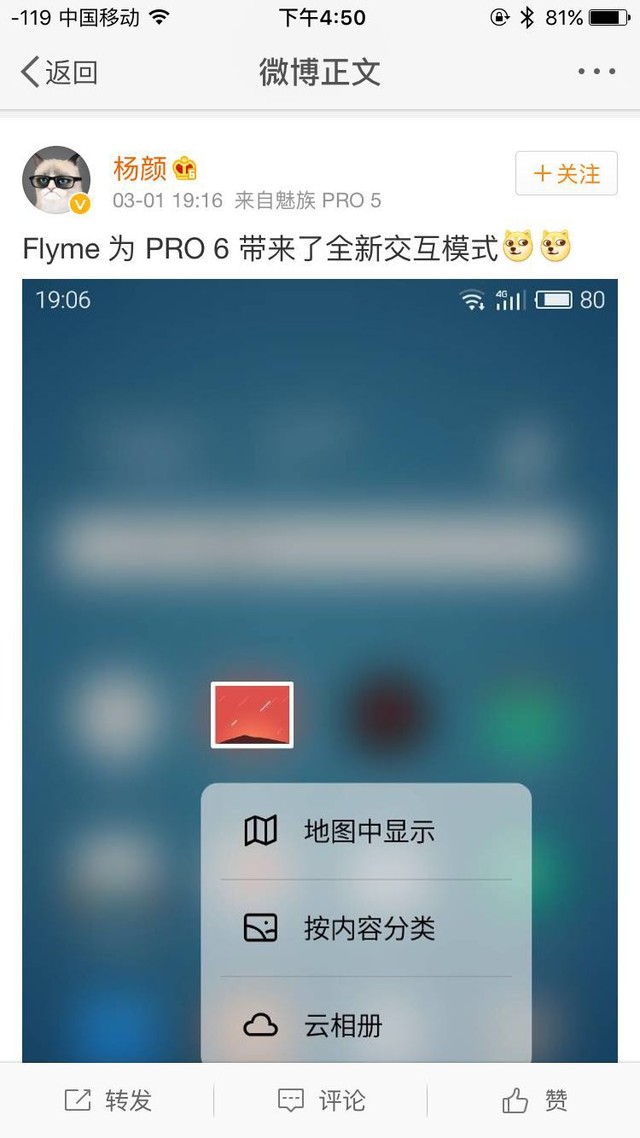 前段時(shí)間魅族楊顏在微博上透露稱,魅族Pro6將會(huì)配備壓感屏幕,并且魅族定制的Flyme系統(tǒng)也會(huì)為壓感屏幕提供相關(guān)的軟件支持,同時(shí)放出了一張魅族Flyme系統(tǒng)中,類似3DTouch呼出應(yīng)用圖標(biāo)任務(wù)菜單的一張截圖。