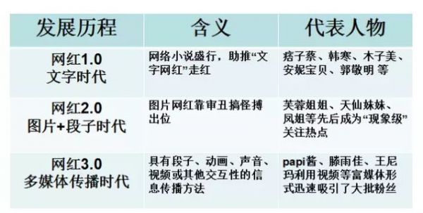 表:中國(guó)網(wǎng)紅發(fā)展歷程