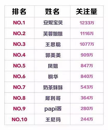 數(shù)據(jù)來(lái)源:百度知道中國(guó)網(wǎng)紅十年排行榜
