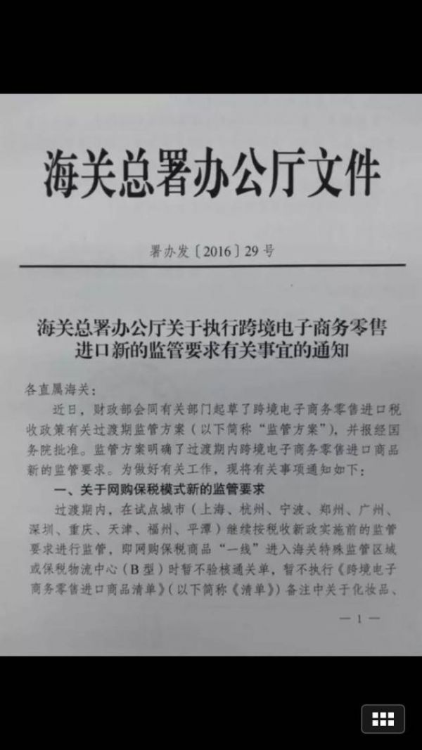 新浪科技訊5月25日下午消息,海關總署昨日發布了關于執行跨境電商電子商務零售進口新的監管要求通知,通知稱“過渡期間,在試點城市繼續按稅收新政實...