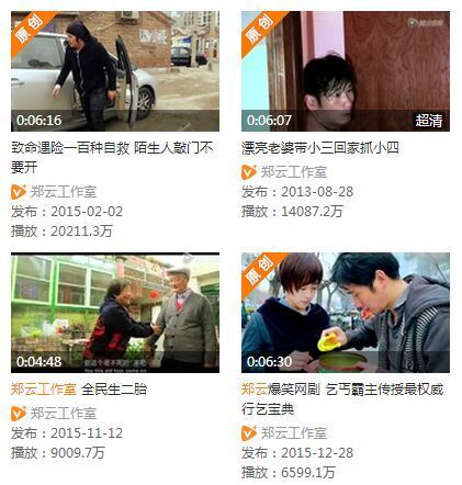 鄭云是中國著名的喜劇演員,現任中國微電影協會常務副會長,被譽為“網絡短劇帝”、“微電影之父”、“中國手機電影第一人”。擁有龐大的群眾基礎,其粉絲數高達上千萬。在全國各大網站、移動手機終端、多家地方電視臺、公交地鐵電視及Youtube、Face book、Google+等國外主流網站設有鄭云工作室微電影專區;在澳大利亞、韓國、美國、英國等地均設有鄭云微電影愛好者工作站。相信很多人都看過他的作品,他的微電影搞笑幽默,深受廣大觀眾喜愛。其代表作有《零落岸邊蘆荻花》、《致命遇險一百種自救》、《腦洞大開》、《盜墓筆記之英國歸來》、《微愛之終入佳境》、《青島大蝦后續》、《人生需要一個轉身》以及網絡大電影《肖申的救贖》、《祖業》等等。到目前為止,鄭云工作室所拍微電影作品已達八百多部,他所自編自導自演的優秀影片不勝枚舉,其作品的全球瀏覽量超過百億人次,人氣不輸papi醬。下面,我們來看看鄭云和papi醬的視頻播放量截圖。