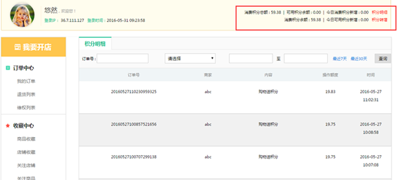 來有影,去有蹤!登錄商城,進入個人中心,體驗積分新功能!