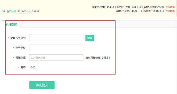 用戶個人中心關于積分的功能優化就這么多嗎?當然不是。除了積分明細和積分轉贈之外,碼農哥哥還新增了積分數額各項顯示功能(在pc端右上角)。在這個角落,用戶可以清晰地知道“消費積分總額”、“可用積分余額”、“消費積分余額”、“今日消費積分新增”等數字顯示。做到積分心里有數,才能制定下一步積分使用計劃。