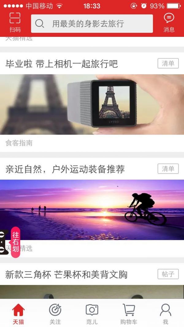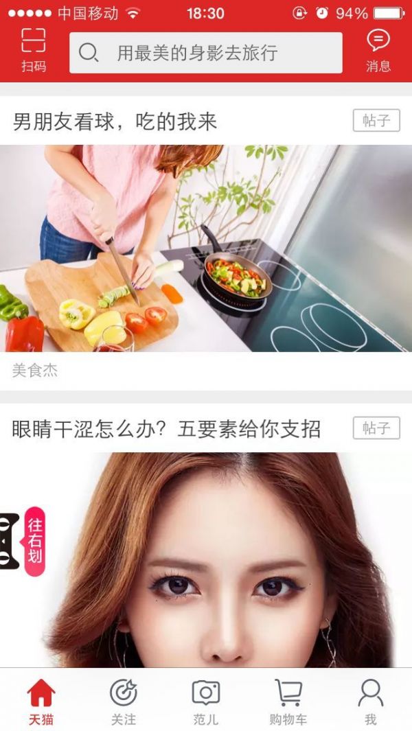 最明顯的是原來按照“女裝”、“男鞋”、“食品”等這些類別作為入口的標簽不見了,取而代之的是帖子或者清單。就像你在微信公號上看到的一篇文章。