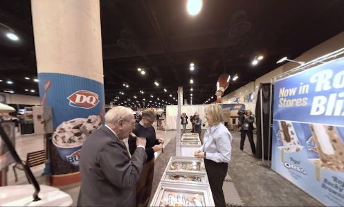 看到DQ就立馬下車買冰激淋吃,巴菲特選了他最愛的香草橙子味,蓋茨選了巧克力味,巴菲特還故意讓蓋茨買單,畫面十分像兩個高中同學出去玩兒。