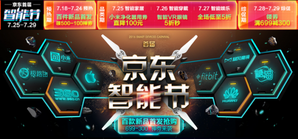 7月18-24日為活動預熱期,7月25日京東首屆數碼智能節將正式放“價”啟動!本次活動涵蓋了智能家居、穿戴、智能娛樂、無人機/機器人等四大品類同時發力,并從18日開始第五代暴風魔鏡、華為智能路由、小米手環2、及360機器人等百余款智能新品強勢來襲,用最尖端科技打造只屬于智能玩家的盛事狂歡。其中,京東首發的第五代暴風魔鏡全面升級回歸,360°全景3D沉浸帶來巨幕級觀影體驗,足不出戶閱盡世界繽紛。小米手環2全新算法,讓每一步變得可見,用更多功能精彩每一天生活。