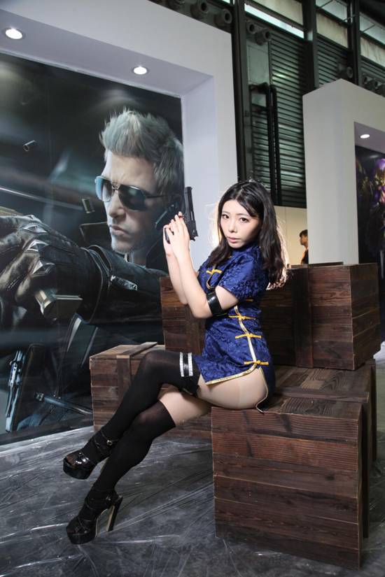 但觸手TV展臺的吸引力可不止游戲體驗區一個!在展臺內有一堆美噠噠的美女coser,就像是手游里的角色美人從屏幕中跳了出來,矗立的一雙雙showgirl的美腿無時無刻都在激發著騷年們的荷爾蒙。
