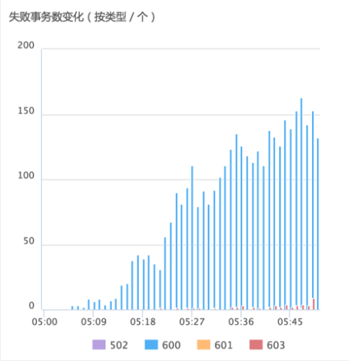 600:connection連接異常,從5:05~5:50共出現264次600錯誤);
