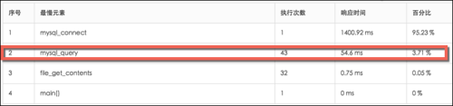 可以看出數據庫查詢操作耗時占比3.71%,是數據庫第二耗時來源;而且多個數據庫查詢SQL語句大部分查詢條件相同,在高并發量用戶查詢時有較大的性能優化空間。