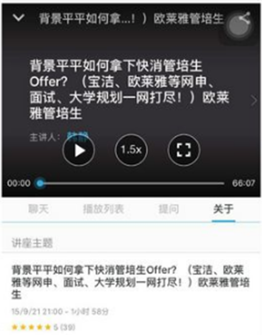 和一本書的區(qū)別:(好)書的優(yōu)點(diǎn)是更加深入,內(nèi)容更多。Live的優(yōu)點(diǎn)是交互性,時(shí)效性強(qiáng)(部分領(lǐng)域,如留學(xué),職業(yè)規(guī)劃,時(shí)效性很重要)。Live可以介紹到很多一線人員看的書,兩者是互補(bǔ)關(guān)系。對(duì)于供應(yīng)者來說,Live能迅速得到反饋,分享成本更低。