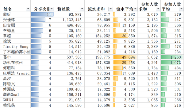 六、不同大V分享次數(shù),和受眾參與度如何?