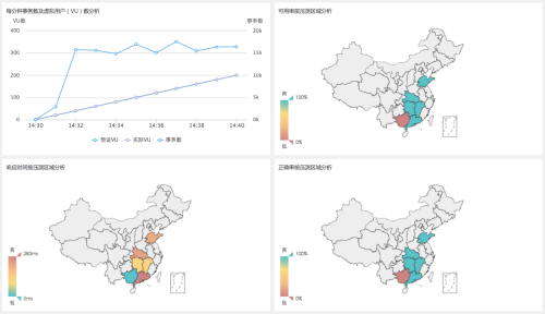 [6]按區(qū)域進行性能分析分布式云端壓測的一個特點是基于云端服務器在一段時間內發(fā)起大量并發(fā),同時也體現(xiàn)了分布式用戶對系統(tǒng)的真實訪問情況,通過按區(qū)域分析,能夠幫助用戶了解不同區(qū)域發(fā)起的用戶量以及每個區(qū)域的訪問性能情況。