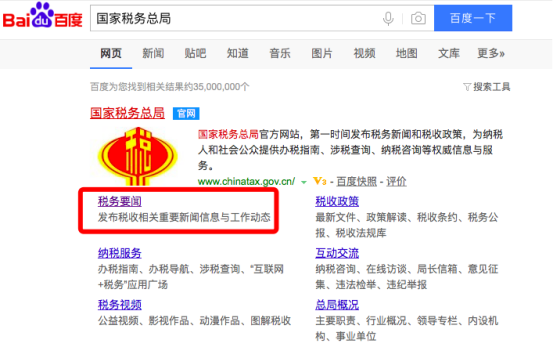 “百度政務生態計劃”的實施對政府、網民二者實現良性溝通有著重要意義。一方面,通過百度專業優待的抓取和收錄機制,政府這樣的稀缺資源可以在百度搜索結果頁展現上優化,從而實現政府官方內容生態和服務生態建設;另一方面,通過政務信息的整合,接入該計劃的政府官網可實現服務信息的外顯,即百度將在搜索結果的頂端卡片中直接呈現網站內部欄目,網民通過點擊所需服務可直達該欄目內頁,實現更便捷的政務信息獲取。例如,搜索“國家稅務總局”,從官網卡片頁上點擊“稅務要聞”等欄目,便可直接跳轉至該官網子頁,了解稅務要聞。