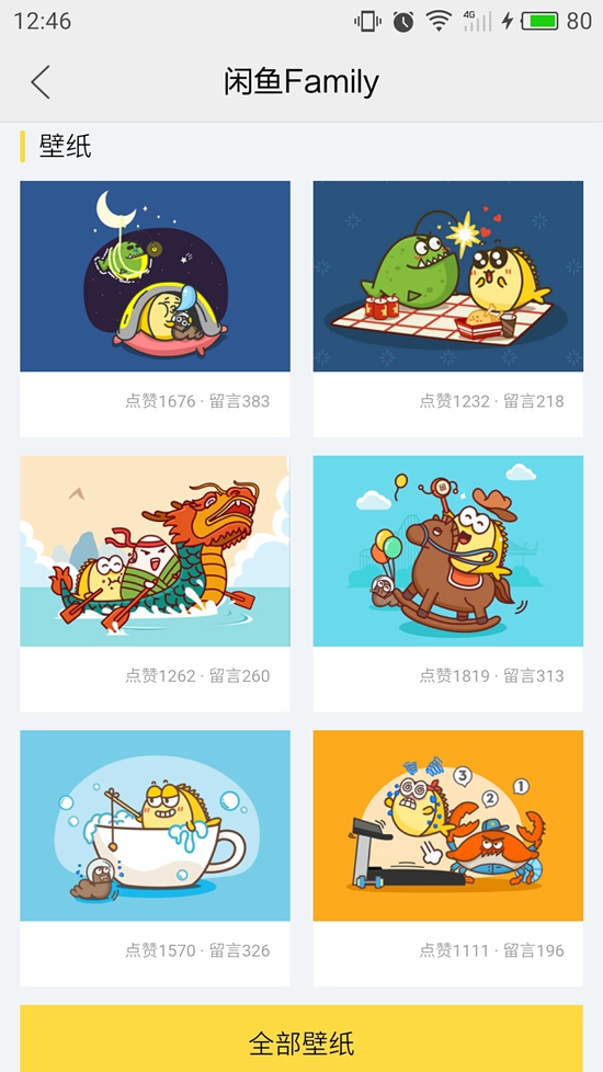 今年起,不少用戶發現,打開自己閑魚手機端,點開“我的”,便看到一行名為“閑魚family”的菜單欄,里面便是包含壁紙、馬克杯、貼紙等在內的閑魚漫畫周邊。雖未正式開售,都還打著“敬請期待”的字樣,但仍獲得了用戶的大量關注,不少人留言“杯子好可愛。”“給我給我!”