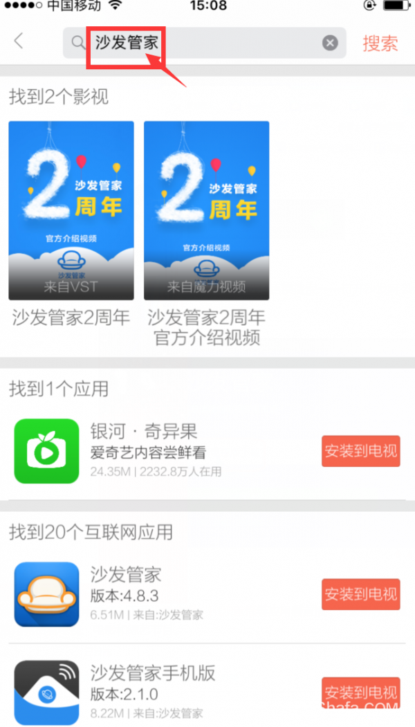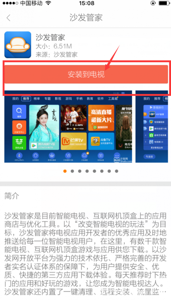 3. 點擊沙發(fā)管家——點擊安裝到電視——完成安裝