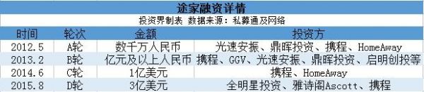 如圖表所示,攜程與途家關系密切,攜程一直重倉途家,曾參與投資途家每一輪融資。直至2015 年第三季度攜程才不再控股途家。當然,除了資本上的聯系,雙方在業務上也早有合作。幾番下來,途家擁有了得天獨厚的流量優勢。