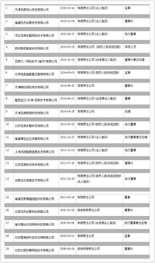其中,在李明遠投資的9家公司中,暢香利泰(北京)餐飲管理有限公司與北京味美曲香餐飲管理有限公司的創始人,赫暢和曲博,均在百度任職過。