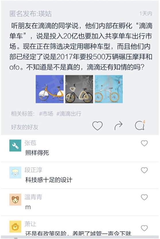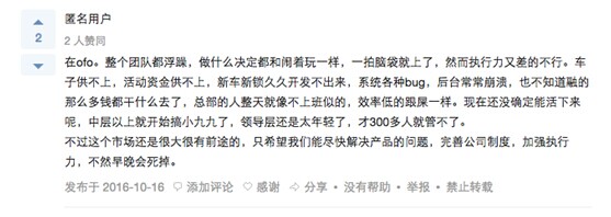 而在知乎上,在問(wèn)題“在ofo或摩拜單車工作,是怎樣的體驗(yàn)?”,有匿名網(wǎng)友的回答,很耐人尋味。