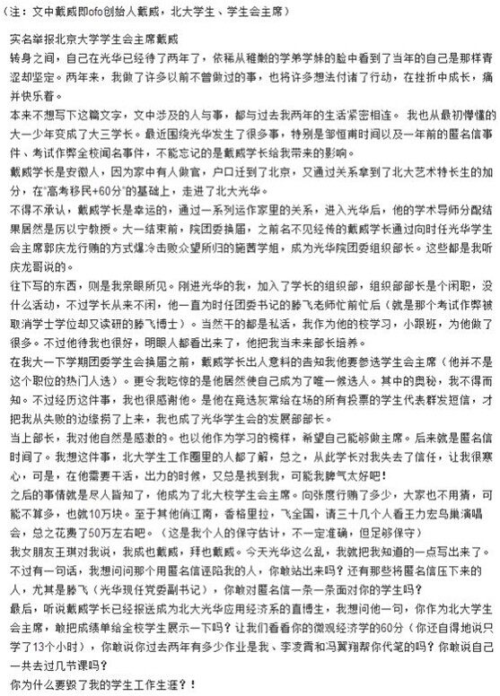 其實(shí)就在幾年前,戴威的不利傳言因鄒恒甫事件就傳播甚廣,戴威本人除了校園政治能力外,其學(xué)業(yè)成績(jī)和為人處事都有不少可議之處。