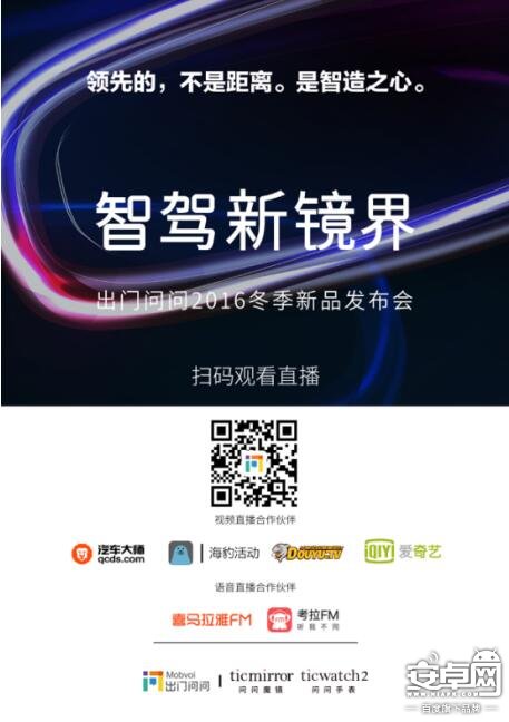 想要具體了解谷歌投資的出門問問具體發(fā)布會(huì)內(nèi)容可關(guān)注出門問問官網(wǎng)(ticwear.com)的視頻直播,同時(shí)還可通過出門問問視頻合作伙伴汽車大師、海豹活動(dòng)、斗魚TV以及愛奇藝,出門問問語(yǔ)音直播合作伙伴喜馬拉雅FM和考拉FM具體觀看或收聽本次發(fā)布會(huì)詳細(xì)內(nèi)容。