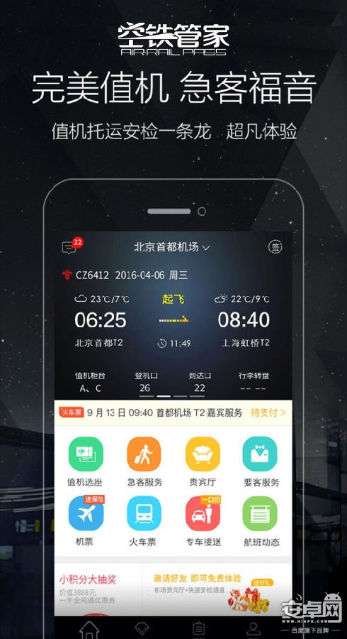 唐漢說,用戶通過空鐵管家這個應用平臺,可以享受到很多機場和高鐵站非常有價值的,甚至是免費的服務,比如,提前代辦值機手續、打印登機牌、行李快速托運、快速安檢通道等,這一整套的值機安檢流程稱為“完美值機”,尤其適合商旅人士,他們的時間很寶貴,空鐵管家可以幫助他們節省大量浪費在排隊等待、尋找問詢的時間,甚至可以及時避免一次誤機的可能;同時這些服務也尤其適合帶著老人和孩子出行的普通用戶。