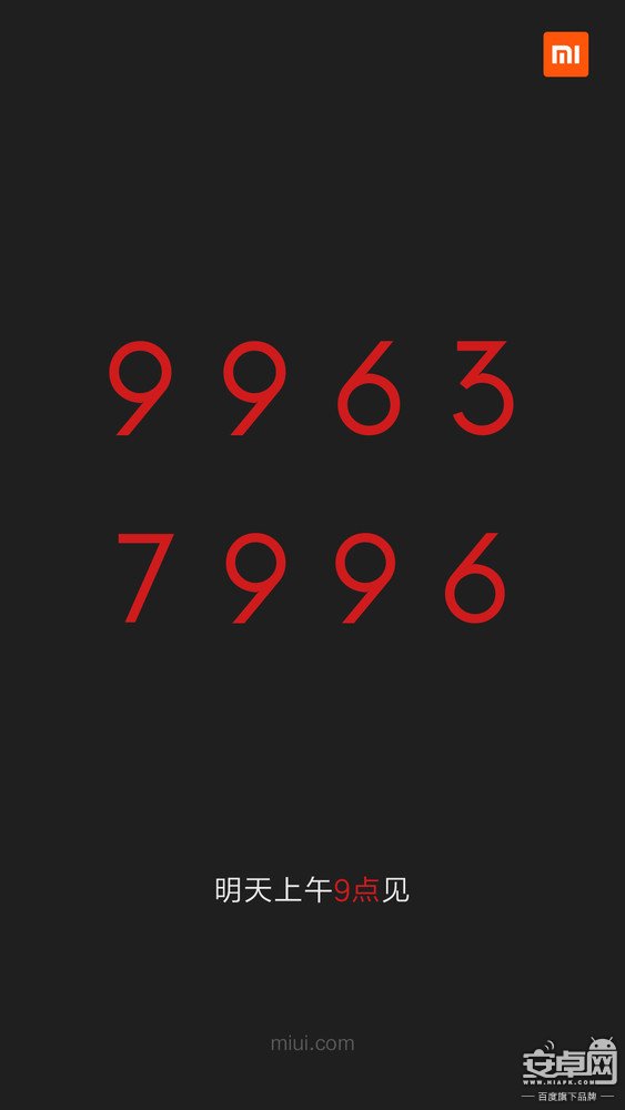 昨晚,小米MIUI官方微博發(fā)布了一張充滿玄機(jī)的海報(bào),海報(bào)的內(nèi)容非常簡單,僅僅給出了“9963”和“7996”這兩組數(shù)字,除此之外就沒有任何信息了。