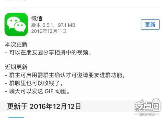 12月12日消息,今天上午,AppStore推送了微信6.5.1版本的更新信息,根據推送介紹,新版本中微信加入了在朋友圈分享相冊中視頻的功能。經筆者簡單試用,從相冊分享到朋友圈的視頻不能加濾鏡,不能簡單剪輯,只支持10秒鐘,播放時不能快進、無進度條。