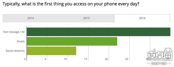 除了短信/即時消息,電子郵件和社交網(wǎng)絡(luò)是手機(jī)用戶早起最關(guān)注的另外兩件事。