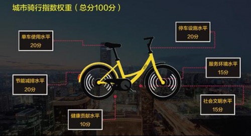 該報告首次提出了城市騎行指數的概念,從單車使用水平、節能減排水平、健康貢獻水平等方面對全國20個主要大中城市的騎行狀況進行了評價。
