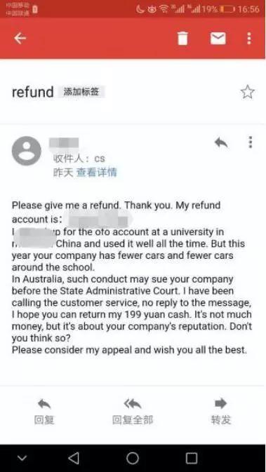 曝網(wǎng)友假裝外國人寫投訴信 ofo秒退押金并回函致歉