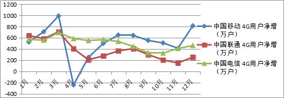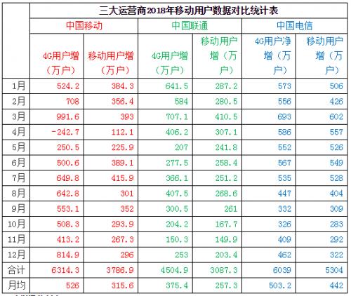 就全年4G用戶增長而言,中國聯通喜憂參半。上半年,中國聯通4G業務的發展勢頭迅猛。各路互聯網卡的推出,讓中國聯通的發展勢如破竹,據統計,僅僅騰訊王卡的產品就為聯通和騰訊帶來超8000萬戶新增用戶。然而王卡效應來勢兇猛,退潮也快,2018年5月份之后進入了低速發展期,這一境況一直持續到2018年12月月,中國聯通4G用戶平均每月僅凈增375.6萬戶,居三家運營商之末。