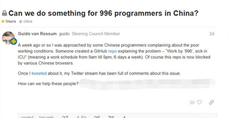 Python之父再發聲:我們能為中國的“996”程序員做什么?