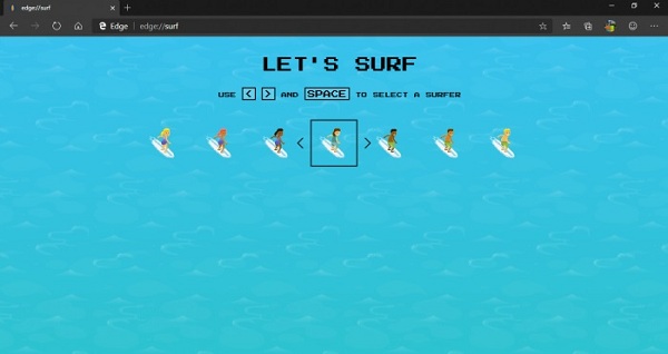 而后把F.移到R.上面再把它拖到下面來觸發彩蛋。另一個添加到用戶收藏夾的頁面--edge://surf出現,點擊即可啟動游戲。