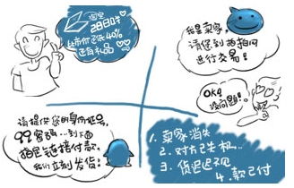 一天小白在辦公室無聊,就在網上閑逛心想最近自己要買個筆記本電腦。哇塞!竟然taobao上這款本本竟然只要2880元低于市場價40%同時最近該店鋪有活動還有豐厚禮品贈送。小白就和賣家熱切的交談起來,在賣家的甜言蜜語的引誘下小白決定購買這款本本了。在小白準備付款時,賣家聲稱自己的拍拍店鋪剛剛開業要賺取信用度,要求買家到拍拍交易。小白心想哪里買都一樣,沒關系。