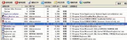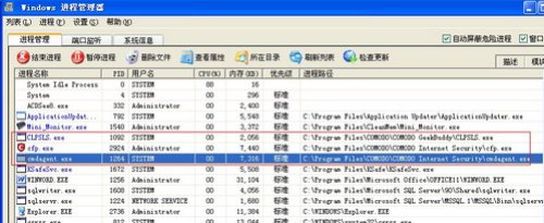 科摩多安全套裝活動時(shí)內(nèi)存資源占用210MB左右,CPU(P4/2.66G)基本于滿負(fù)荷狀態(tài),如圖(24)所示: