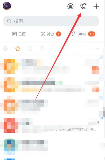 第一:手機進入釘釘客戶端點擊右上角的【電話】按鈕。