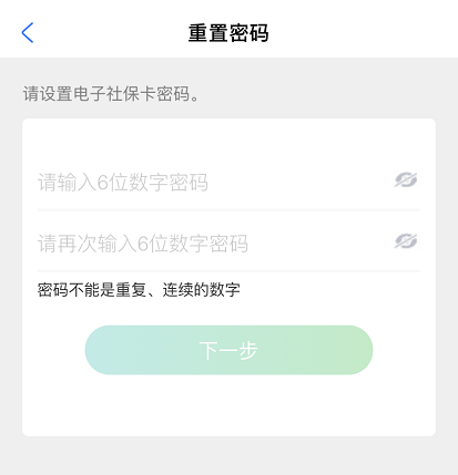 認證通過后,就可以重置電子社保卡的密碼,如圖。