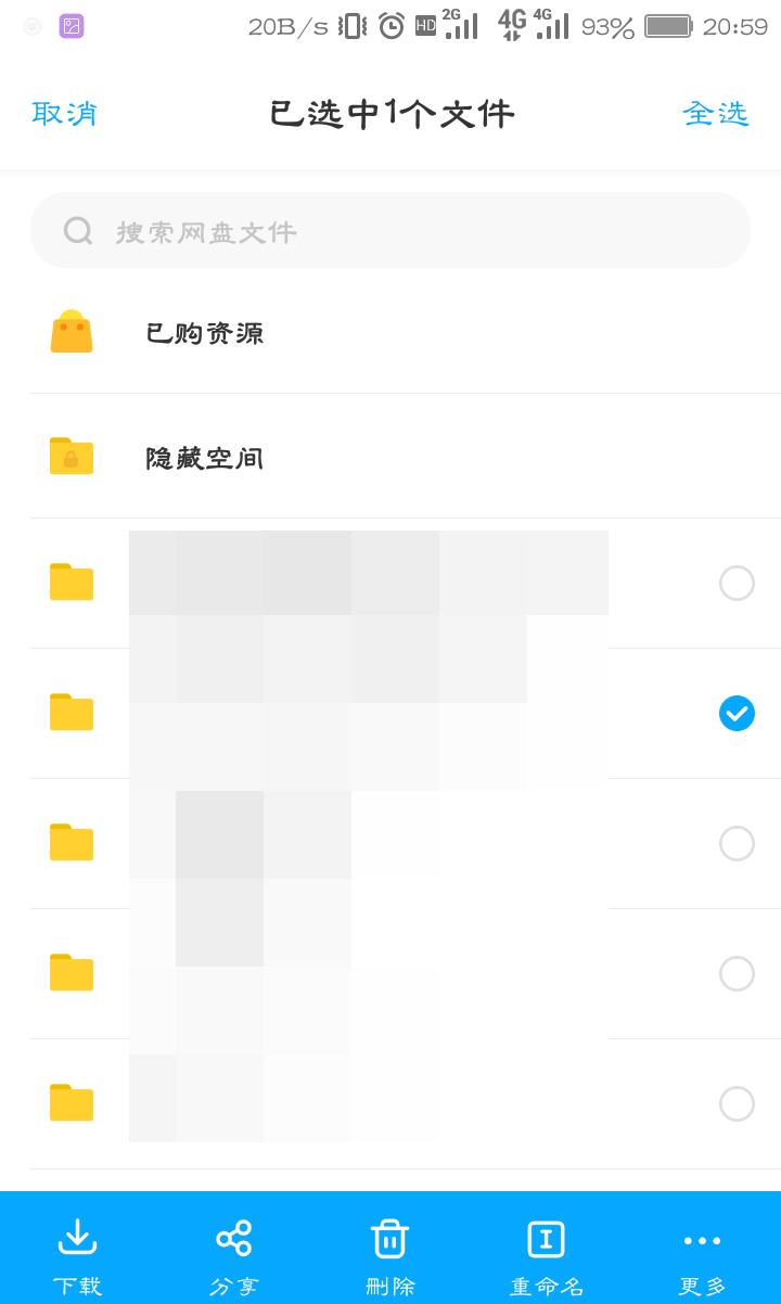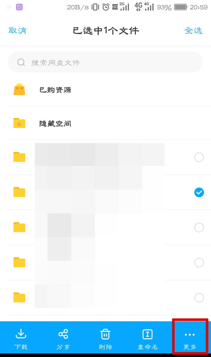 3、接下來長按某個(gè)文件夾,直到這個(gè)文件夾被選中。