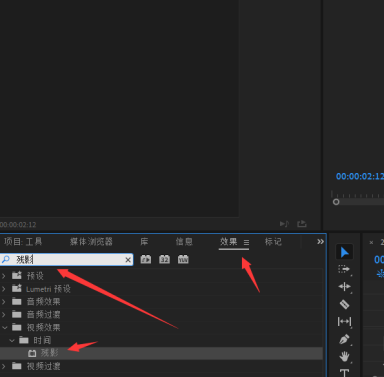 3、然后在效果控件中找到殘影效果。