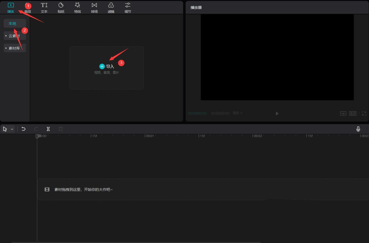點擊媒體按鈕,然后點擊本地按鈕,再點擊導(dǎo)入按鈕,導(dǎo)入剛才導(dǎo)出的視頻,見下圖。