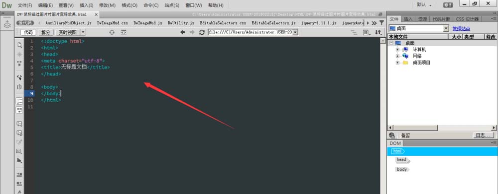 1、新建一個html文檔,然后ctrl+s保存到站點