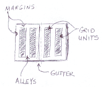 當你將頁面的內部空間(版心)分割為幾個均等部分后,每個單元之間的白空間就稱為"Alley" (欄空)。欄空的方向是水平的、垂直的、或是兩個方向兼有,取決于你的柵格設置。在某些設計軟件中,也稱之為白空間或文本欄的"gutter"(內邊距)。
